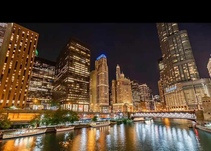 The 988 m² Best Skyrise In Downtown Chicago apartment is situated in the Theatre district of Chicago, just 6 minutes' walk from Boeing International Headquarters Skyscraper. Staying in the apartment, nestled steps away from the scenic Chicago Riverwalk Walkway, guests can relax on a terrace.